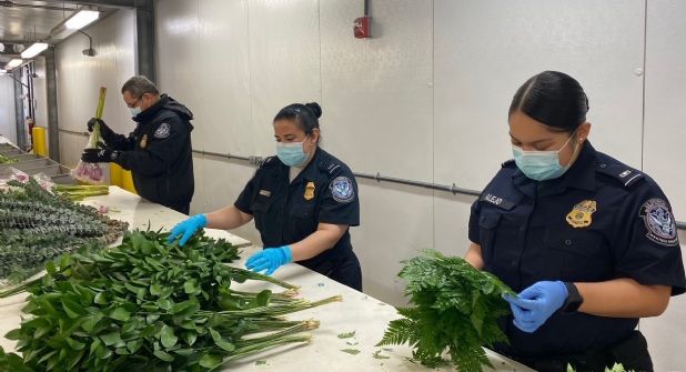 Aduanas (CBP por sus siglas en inglés de Customs and Border Protection), recoge el 80 por ciento de todo arreglo floral como ramos, coronas, figuras y demás, son vegetales prohibidos porque regularmente tienen insectos o plagas.
