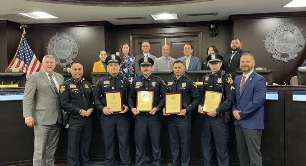 Por llegar en segundos a la escuela preparatoria Alexander el viernes 02 de febrero y cubrir desde dentro del edificio la amenaza de tirador activo, fueron reconocidos 4 policías municipales por el cabildo local.