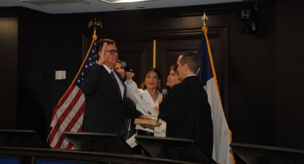 El primero en tomar juramento fue Rick Garza, quien apenas a mediados de diciembre logró ganar el puesto en una elección especial. El juramento se lo dio el Juez Federal John Kazen.