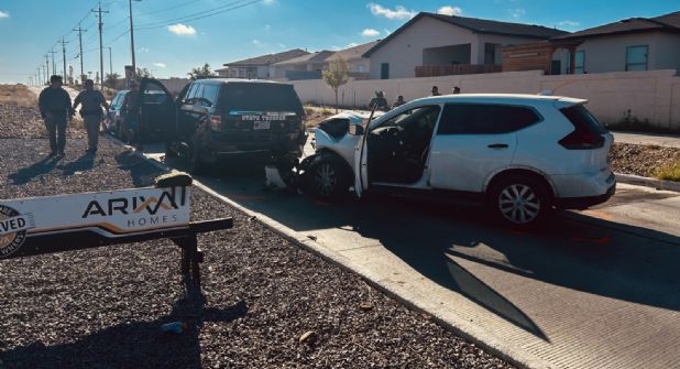 Madre de tres niños chocó contra una patrulla del DPS que brindaba ayuda a un auto con dos llantas ponchadas en la colonia Los Presidentes, los chicos de 6 años, 6 meses y 1 año de nacidos, así como la señora, resultaron lesionados.