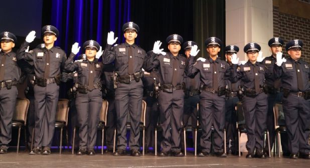 El Departamento de Policía de Laredo dio la bienvenida a los nuevos miembros de esa familia de más de 530 miembros, en el auditorio principal del Colegio de Laredo, donde culminaron sus estudios en las aulas, para después pasar a la calle, al trabajo de campo.