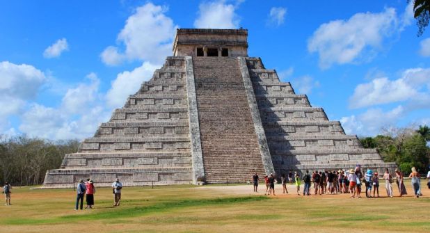 Una turista rompió las reglas de seguridad de la Zona Arqueológica de Chichén Itzá en Yucatán y subió a la pirámide El Castillo por una de sus escaleras laterales.