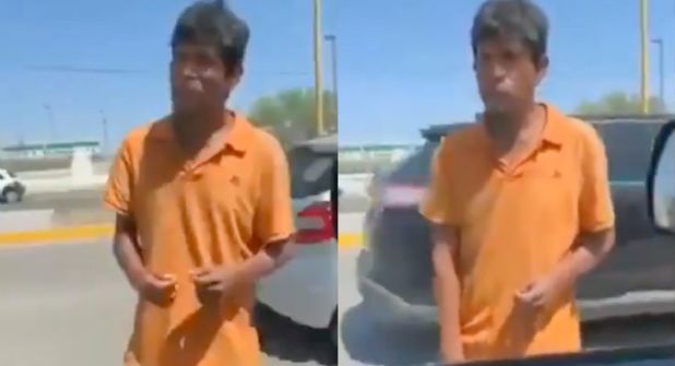 Las imágenes muestran a un hombre en situación de calle, que se acerca a un automovilista que estaba aparentemente haciendo alto en un semáforo.