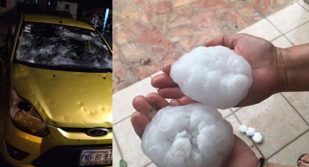 El mal tiempo trajo consigo una tremenda granizada con bolas que median entre 2.5 y 3 pulgadas; causando enormes destrozos en viviendas, autos, hasta hubo tres lesionados.