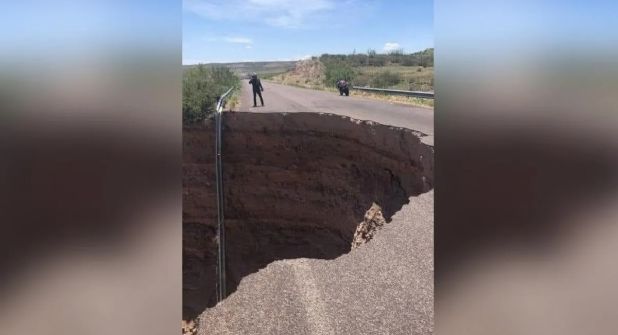 Se reportó una nueva falla en la carretera Namiquipa-Buenaventura, en Chihuahua, inmediatamente el socavón se viralizó.