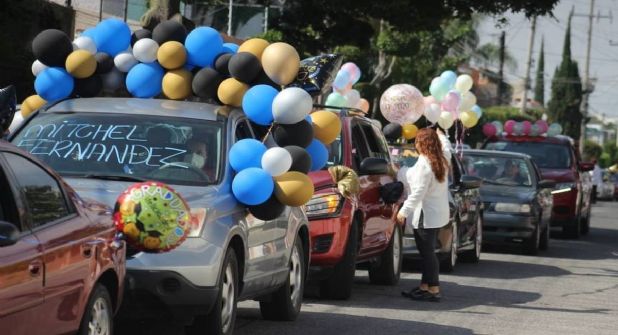 El peculiar momento se vivió en Anáhuac, Nuevo León La imagen se hizo popular luego de que un usuario de Facebook la compartiera con la siguiente leyenda (se comparten tal cual fueron escritos): "Así llego el pequeño Santiago a la caravana del JN CONCEPCION V. DE ZORRILLA TM. En Anáhuac NL, donde recibió su diploma por haber concluido su primer año de preescolar con éxito! Madres que valen oro Felicidades".