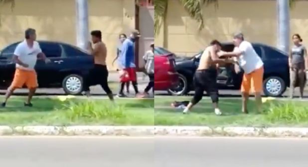 Las imágenes fueron difundidas por usuarios donde las imágenes muestran a un automovilista y un hombre en situación de calle, discutiendo para luego acto a seguir en los golpes.