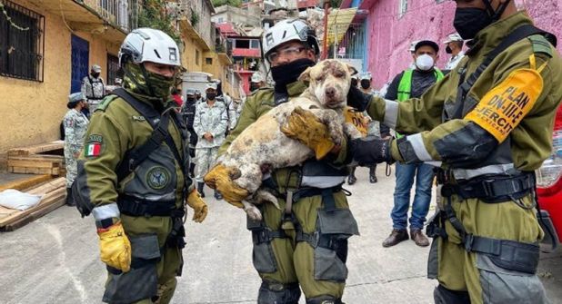 La perrita que encontraron llevaba bajo los escombros 3 días, por fortuna pudo ser localizada con vida y ya es atendida por los veterinarios.