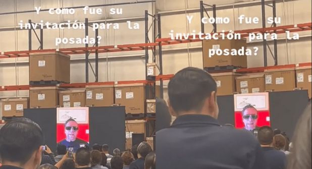 Fue en Saltillo, donde en una empresa maquiladora se proyectó el saludo que el actor y conductor hizo a los empleados para que acudan este 2 de diciembre a la posada.
