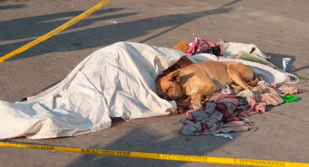 Pese a que las autoridades intentaron retirar a la mascota para colocar la cinta, el animal volvía al lado de su amigo humano y ahí permaneció por casi dos horas hasta que los peritos hicieron el levantamiento del cuerpo.