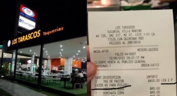 Mediante Facebook el usuario Luis Ángel dio a conocer la situación cuando, en compañía de su pareja, visitó la taquería Los Tarascos sucursal Villamarino, ubicada en la avenida 135, al sur de Cancún, Quintana Roo.