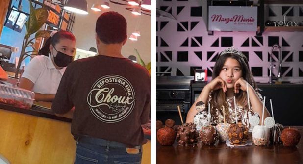 Emprendedora desde prácicamente una bebé, la pequeña entró al negocio de las golosinas preparadas a base de manzana.