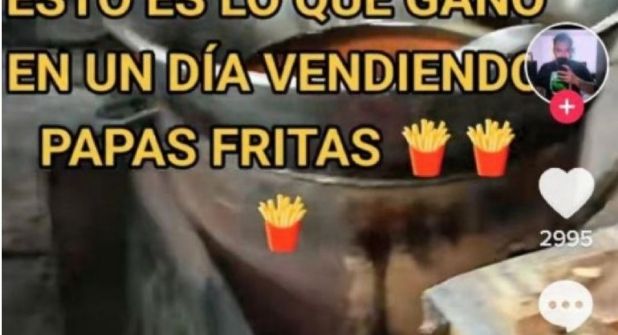 En la grabación se puede observar cómo el TikToker platica acerca de su empleo y de cómo trabajando dos o tres horas al día en un puesto cercano a su casa le permite ganar hasta mil 350 pesos al día vendiendo papas.