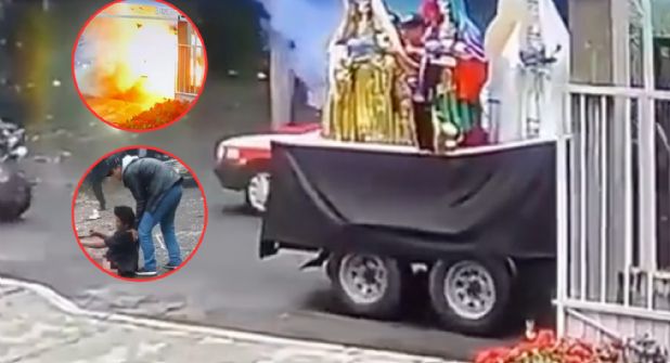 Fue gracias a cámara de seguridad que el hecho quedó grabado, la filmación muestra como una camioneta de remolque lleva varias figuras de la Santa Muerte y cuando detrás de una de estas imágenes empieza a salir humo que en cuestión de segundos concluye con una explosión, haciendo volar al vehículo que transportaba las estatuas y a quienes estaban cerca de la procesión.