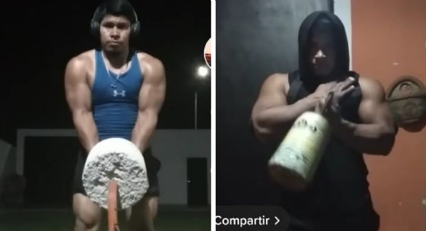 En algunos de sus videos en redes, Freddy Bautista ha compartido el secreto de su cuerpo: levantamiento de pesas creadas por él mismo y algunos artículos extras como ligas para complementar su rutina.