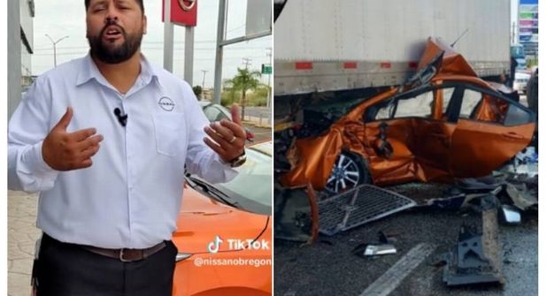 La idea original con la que se abre el Tiktok es "¿Es el versa el auto más seguro?" haciendo una especial reflexión sobre este automóvil que a pesar de haber quedado aplastado contra un tráiler protegió al docente de un destino oneroso.
