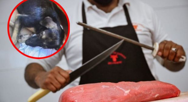 Justo en el momento en el que el can iba a escapar con el botín, el trabajador lo interceptó, dándole una paliza. Otro de los empleados del lugar tomó un objeto punzocortante, presuntamente un cuchillo para filetear, comenzando a cortarlo con tal fuerza que incluso le fracturó la extremidad.