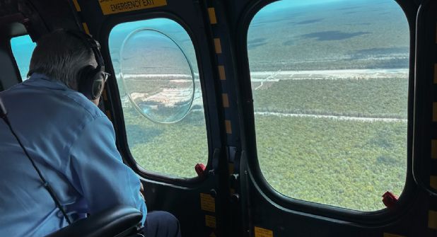 "Hoy (sábado) sobrevolamos el trayecto Chetumal-Tulum-Cancún-Mérida y tuvimos dos reuniones para constatar avances en el aeropuerto de Tulum y en los tramos 5, 4 y 3. Mañana vamos hacia Campeche y por la tarde regresaremos a la Ciudad de México.