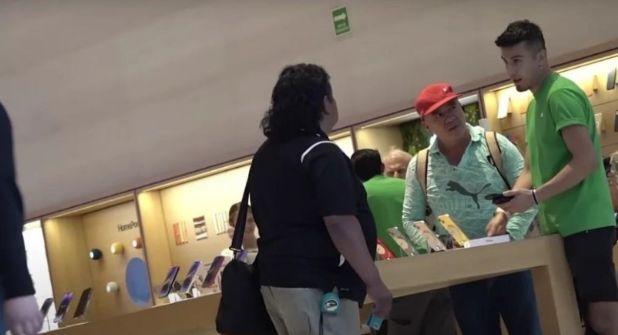 Una vez animados, el youtuber los llevó a una Mac Store donde la empleada que los atendió les dio los costos de los teléfonos de alta gama, pero al solicitarles la forma de pago, los trabajadores le dieron la tarjeta de crédito que el youtuber les había dado para la compra, pero necesitaban una identificación, motivo por el que no pudieron adquirir el equipo.