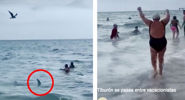 Un video aterrorizó las redes sociales, pues en él se aprecia como un escualo se desliza entre vacacionistas que quedan inmóviles por el miedo al ver pasar al animal marino entre ellos.