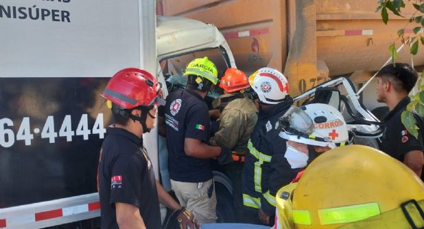 Un choque entre un tractocamión y un camión de carga dejó a dos hombres prensados en la cabina de una de las unidades en la Carretera Nacional en Montemorelos, Nuevo León, en el kilómetro 125.