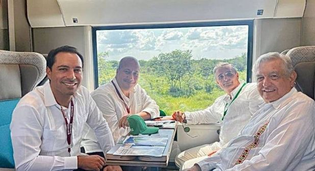 La primera unidad, con cuatro vagones, salió a las 12:20 de la tarde, cruzó un puente entre ligeros aplausos de sus seguidores apostados sobre el periférico; en su recorrido privado iba acompañado por los gobernadores de Campeche, Layda Sansores; de Yucatán, Mauricio Vila, y de Quintana Roo, Mara Lezama, además de empresarios y directivos de las constructoras como Carlos Slim, de Grupo Carso.