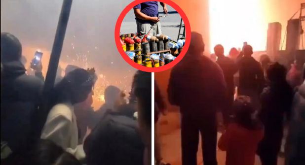 Hombres y mujeres de todas las edades participaron en la quema de pirotecnia, pero su mal manejo provocó que un cohete, conocido como “buscapiés”, saliera proyectado hacia un cilindro de gas LP, el cual estalló al instante.