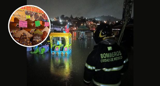 La Feria del Mole se llevaba a cabo en la Ciudad de México, Alcaldía de Milpa Alta, cuando un fuerte aguacero sorprendió a los asistentes y expositores, quienes poco pudieron hacer para salvar sus mercancías debido que el nivel del agua comenzó a subir rápidamente.