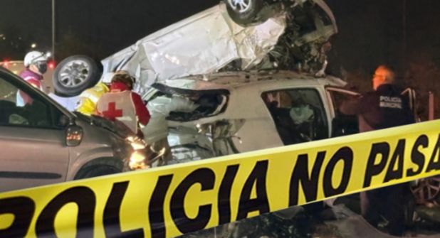 A la altura de la colonia Valle Dorado, se desplegaron elementos de la Fiscalía General del Estado para realizar las maniobras para rescatar los cuerpos de entre los retorcidos metales.