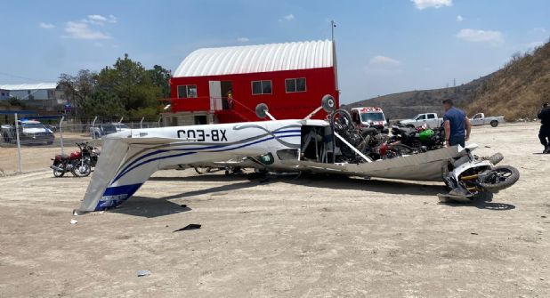 Los tripulantes de la avioneta eran dos hombres de 25 y 29 años, y una mujer, quienes fueron atendidos por elementos de la Cruz Roja y del Grupo Relámpagos.