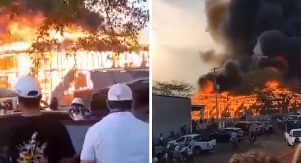 Hay varios videos que circulan en redes sociales y se observa cómo el incendio comenzó en la parte alta del inmueble, para luego incendiar toda la plaza en escasos minutos.