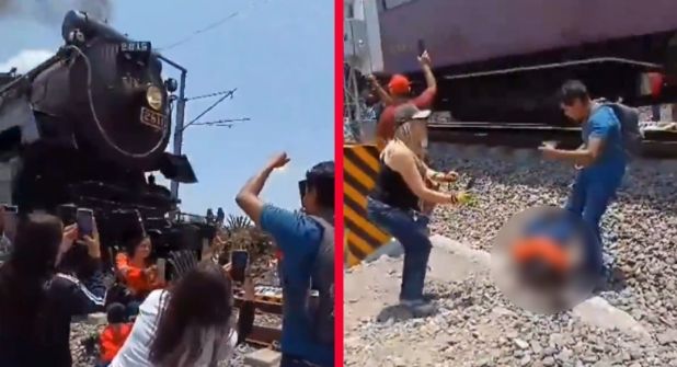 En las imágenes se muestra a la fémina, junto a grupo de gente que esperaba el paso del tren "La Emperatriz" en Nopala de Villagrán, Hidalgo. Justo a llegar, muchos sacaron su celular para tomarse la foto del recuerdo, sin embargo, ella quería hacer algo más osado.
