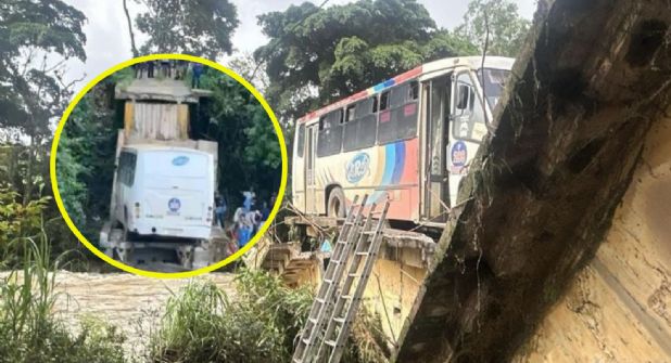 Colapsa puente, cae camión y muere mujer