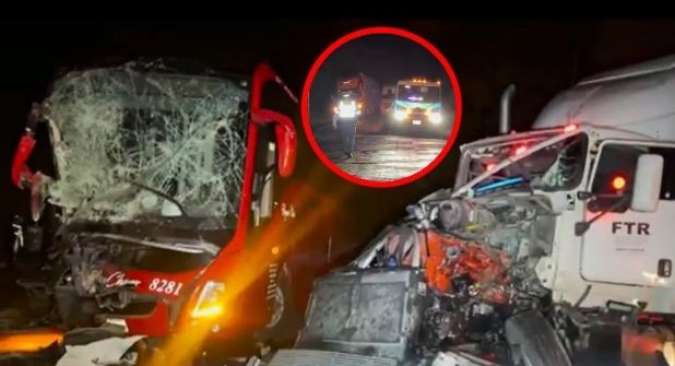 Se registro un brutal choque frontal entre un autobús de pasajeros y un tráiler de carga, en la Carretera Libre 57, cerca del ejido Chapultepec, del municipio de Arteaga, en el estado de Coahuila.
