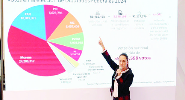 “Y en todo caso están sobrerrepresentados los de minorías, ¿por qué? Pues porque tienen más diputados que los que ganaron”, aseguró Sheinbaum. Agregó que aunque haya desplegados de quien quiera, el INE y el TEPJF deben cumplir la ley.