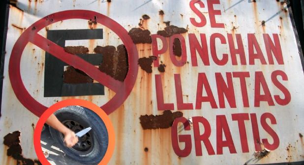 Poner en práctica la amenaza de 'ponchar llantas gratis' se considera un delito de daño a la propiedad ajena, según el artículo 399 del Código Penal Federal.