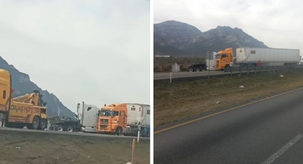 La carretera libre Saltillo-Monterrey fue cerrada este mediodía por un accidente protagonizado por dos tráileres, por lo que hay largas filas de vehículos esperando que se despeje la zona.