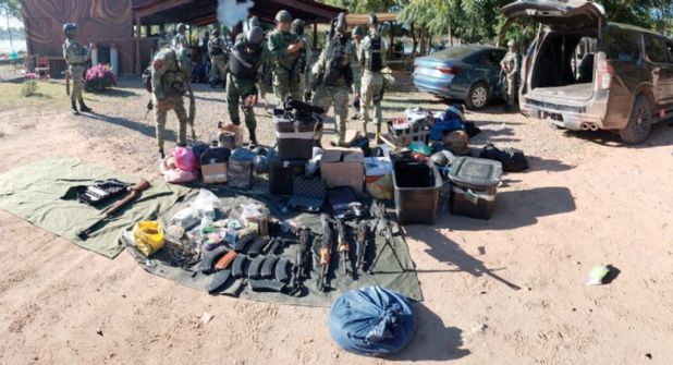 Como resultado detuvieron a tres hombres, les aseguraron ocho armas largas, seis armas cortas, nueve vehículos, 35 cargadores, una cinta eslabonada con aproximadamente 350 cartuchos y equipo táctico, además se desmanteló un área habilitada como campamento.