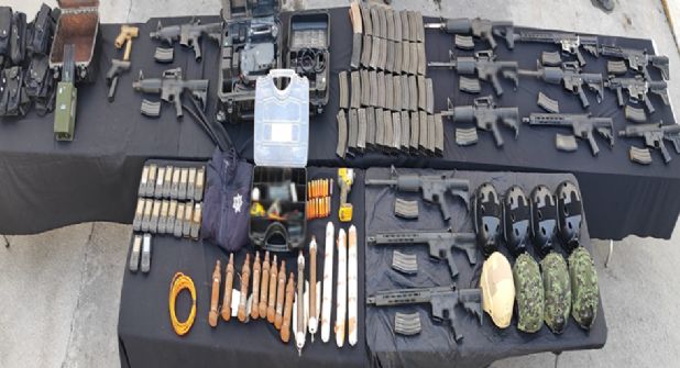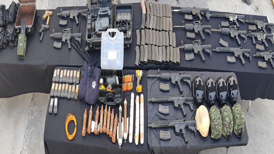 -En Montemorelos, elementos de GN, Ejército Mexicano y Policía Estatal detuvieron a 17 personas, les aseguraron 14 armas largas, dos armas cortas, 96 cargadores, 1,800 cartuchos, tres explosivos, 10 artefactos explosivos improvisados, dos drones, ocho cascos balísticos, 14 chalecos balísticos, siete fornituras, 18 teléfonos celulares y un vehículo.