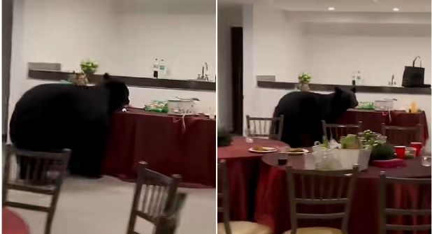 Según la narración que se escucha al fondo, el oso negro fue directo a la mesa de panquecitos o cupcakes, y ahí se quedó entretenido. Gracias a las imágenes del video, se puede ver que, al parecer, el plato fuerte aún no era servido, pues los utensilios en la mesa se veían limpios.