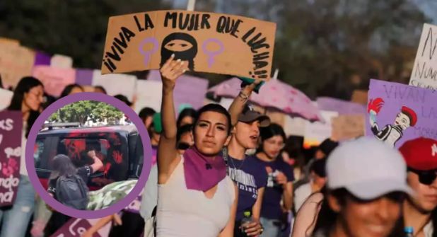 El video compartido en redes sociales muestra como un colectivo de mujeres, perteneciente a la marcha del presente día, arremetió contra la unidad de emergencia.