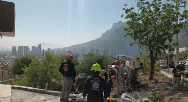 El accidente se dio cuando el camión revolvedora se quedó sin frenos en la pendiente de Prolongación Constitución; el conductor alcanzó a dar vuelta en la calle Alberto García Guzmán, evitando chocar de frente a las casas.