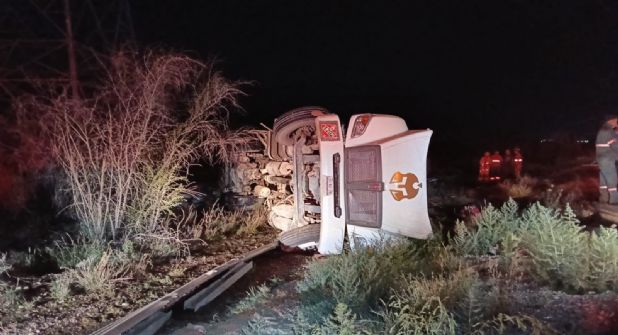 A pesar de la volcadura, el accidente no reportó personas lesionadas.