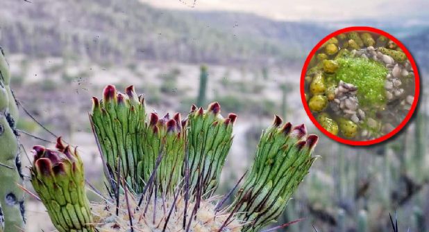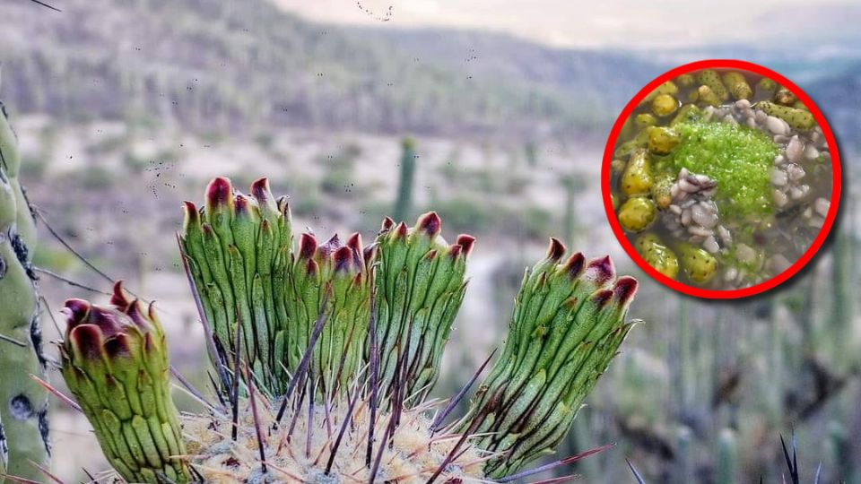 Se trata de la flor de la tetecha, una cactácea gigante (la Neobuxbaumia tetetzo) que puede alcanzar los 15 metros de altura y que por generaciones ha acompañado y alimentado a las comunidades del semidesierto.