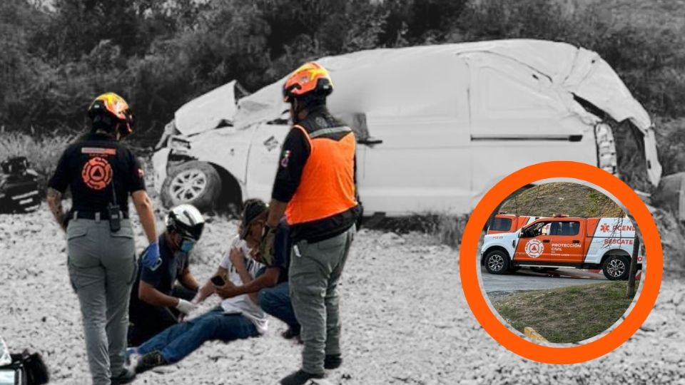 Un vehículo con dos pasajeros que viajaban con rumbo de Saltillo para llegar a su trabajo sufrió una volcadura cerca de un vado en García.