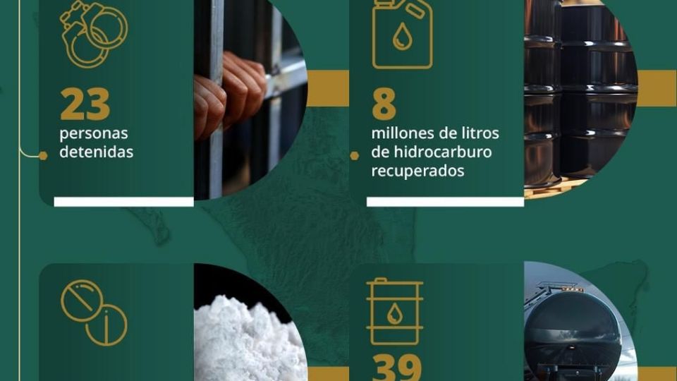 En acciones coordinadas del Gabinete de Seguridad se llevaron a cabo detenciones, cateos, aseguramientos de armas de fuego y de distintos tipos de droga en Coahuila, Durango, Guanajuato, Hidalgo, Jalisco, Sinaloa, Tamaulipas, Tlaxcala.