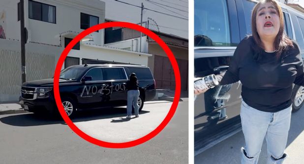Una mujer, visiblemente alterada, roció pintura sobre una Suburban de alto valor económico que se encontraba momentáneamente frente a su domicilio.