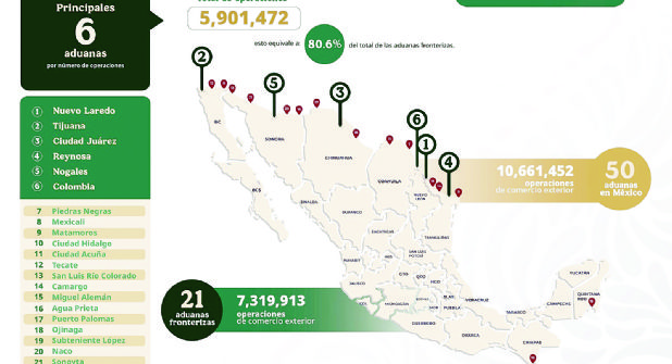 En total, 21 aduanas fronterizas estuvieron activas, con Nuevo Laredo en el primer lugar nacional por número de operaciones.