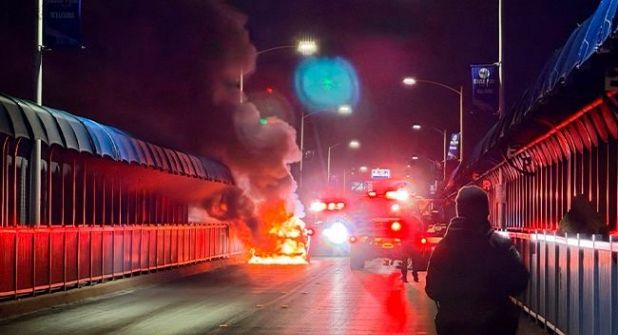 El siniestro se registró en la parte media de la estructura del puente, cuando el auto comenzó a arder por causas que no han sido oficialmente detalladas por las autoridades, aunque diversas versiones apuntan a un posible desperfecto mecánico que desencadenó el incendio.