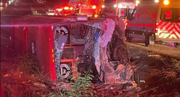 El accidente habría ocurrido porque un tráiler impactó al autobús y, tras causar la volcadura, el conductor de la pesada unidad se dio a la fuga.